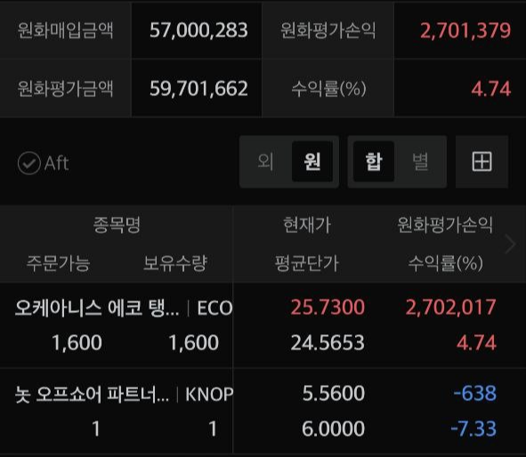 1주는 정찰대 역할이고 탱커 주식 처분 이후 투자 대상 중 하나이다.